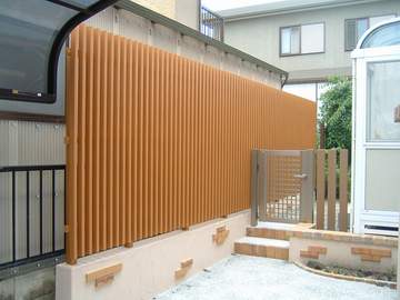 お隣との境界にモダン和風テイストの格子ユニットを使用しました。