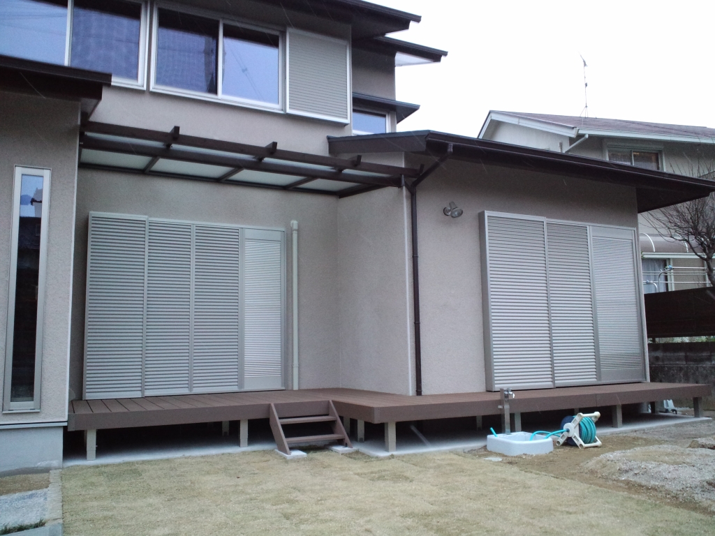 風合いの良い木目調のテラスと再生木デッキを取付しました。