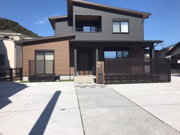 素敵な家屋に合う、スクリーンフェンス・人工木デッキ・人工芝施工しまた。
