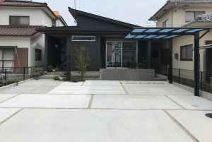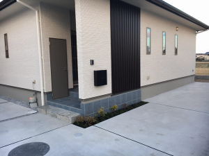 モダンな家屋にあう目隠しフェンス・美しい乱形石張りのアプローチ・スマートなデザインの機能ポール・スタイリッシュなカーポートで統一感のある素敵な外構になりました。 機能ポール(三協アルミ マクリズムP) カーポート(三協 […]