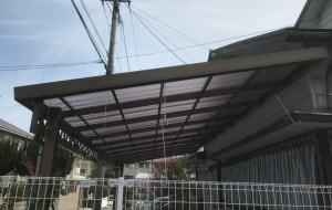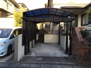 YKKAPのレイナワンポートグラン 設置しました。 4本足で耐風圧に優れたカーポート!! オプションのサイドパネルをする事によって 気になる目線もこれで解決。