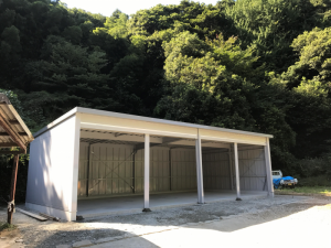 2017年9月30日 大型イナバ物置設置しました。 車4台駐車可能なので、ガレージに!農作業の収納など、用途は様々です! シャッター付でセキュリティも万全です☆