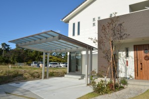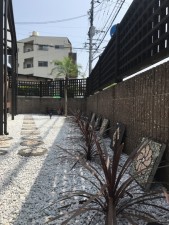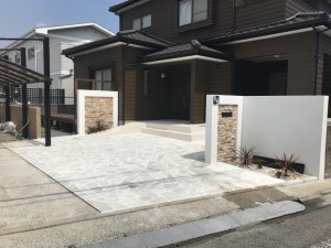 白を基調とした石材でバリ風外構を作りました。お施主様のイメージ通りでお施主様も大満足頂きました。
