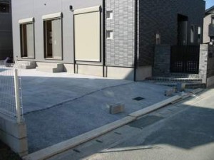 サンゲートR型の施工途中です。豪華な感じになってきました。後、大型鋳物門扉を取付、土間はグランドコンクリートをします。完工が楽しみです