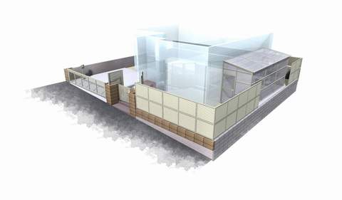 ルーバーフェンスとパネルフェンスの機能を十分に活かし、外部からの視線の遮断を図りました。家の横には青い空が気持ち良いアウトドアリビング空間も設けました。