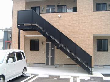 鉄製階段にアルミ製の手摺を取付しました。目隠しタイプです。