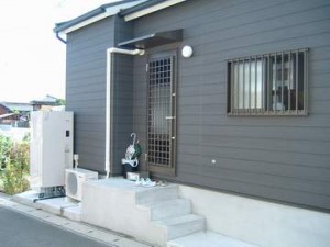 特注寸法の門扉です。車椅子の利用に合せて作りました。残念ながら写ってはいませんが上部にはカーポートを利用した屋根を取り付けしています。