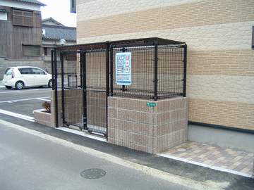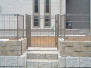 このゴミ置場の開口部は片引きの引戸になっています。フェンスを加工した特殊納まりです。