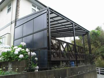 ウッドデッキの屋根を最新型のテラスで作り替えました。