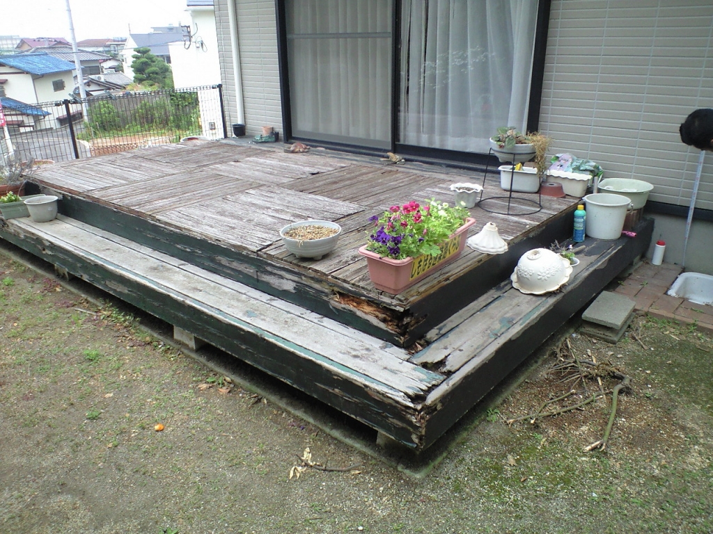 Before(ビフォー) Before(ビフォー) After(アフター) 朽ち果てた木製デッキを、再生木デッキに取替しました。 新しく取付した再生木デッキには、オプションの段床(2段)を付けました。 FacebookXBlueskyHatenaCopy