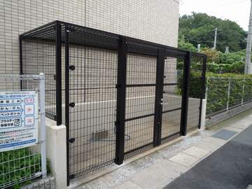 既設ゴミ置き場に現場納まりのカラス避け囲いを付けました。
