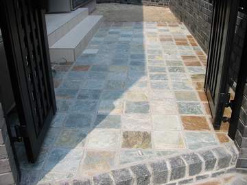 緑の色が入った方形の自然石張りです。乱形の石張りとは違った表情が楽しめます。