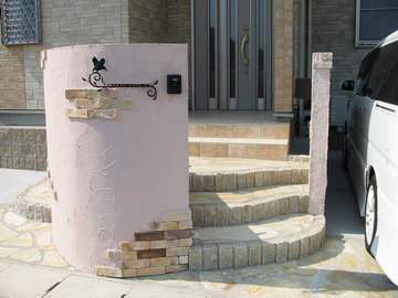 半円形の門塀が玄関とのアイストップ