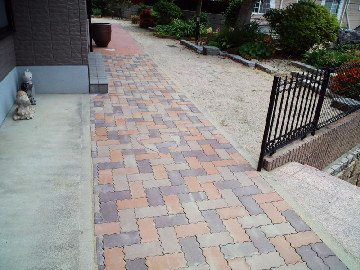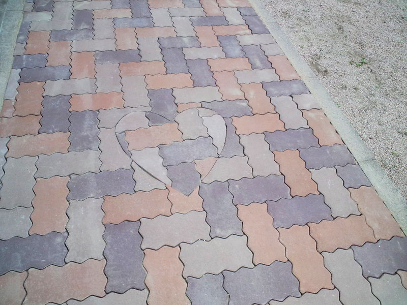 インターロッキングのランダム張りです。インターロッキングをカットして、隠れハートを入れました。浮き上がったように見えます。