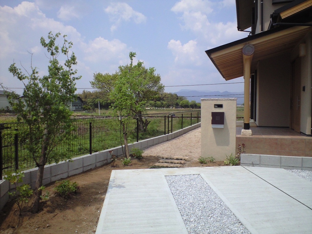 シンプルですが立派に ”和風” です。植栽は、モミジとヤマボウシをメインして、低木・下草を数種 類使いました。
