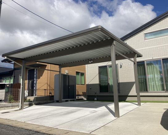 機能性も兼ね備えたスタイリッシュなカーポート。 【三協アルミ G1-R 折板屋根】