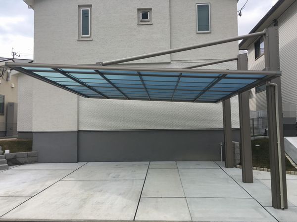 三協アルミのダブルフェースはダイナミックな構造体で開放感があり、見通しもよく車の出し入れがしやすくなります。