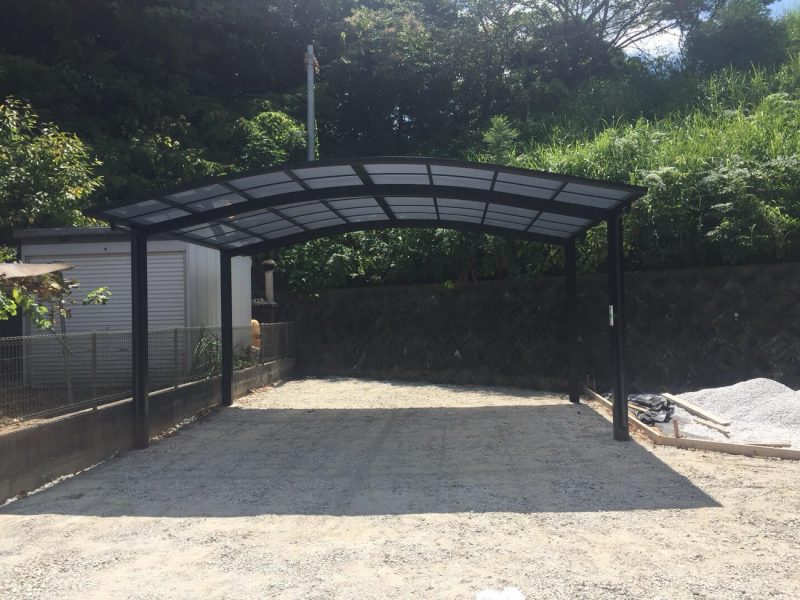 三協アルミのカムフィエースワイドは耐風性に優れ、間口方向に2台駐車可能です☆