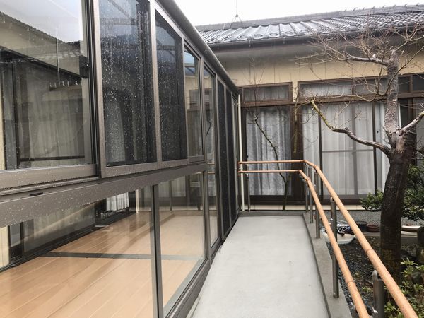 天候に左右されない快適なテラス囲いが出来ました。 三協アルミの晴れもようwithは洗濯物干しに必要な換気・通風機能を強化したランドリースペースです。 スロープに通行や動作をサポートする手すりを取り付けました。 FacebookXBlueskyHatenaCopy
