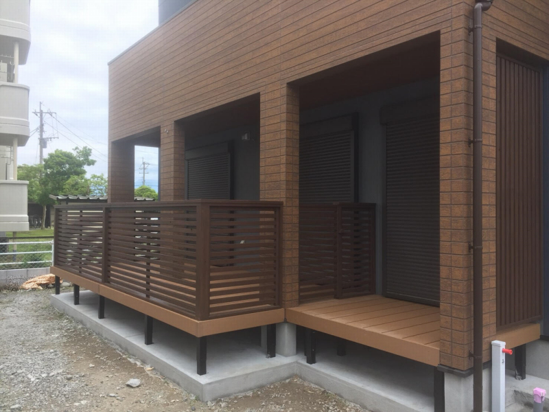 温もりのある木質感を再現した人工木デッキです。