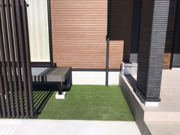 素敵な家屋に合う、スクリーンフェンス・人工木デッキ・人工芝施工しまた。【YKKAP ルシアススクリーンフェンスS02型T180・リウッドデッキ200】 FacebookXBlueskyHatenaCopy