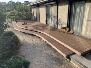 おしゃれな目隠しフェンスで、建物と調和する木調でモダンに仕上がりました!