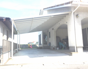 三協アルミのカーポート G-1ssは耐風性能に優れた折板屋根カーポートです。