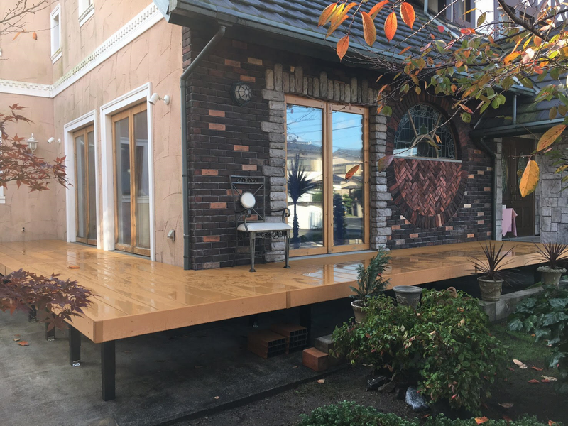 人工木デッキからお庭の紅葉を楽しめ、くつろげる空間になりました♪ 三協アルミのひとと木は天然木の温もりある風合いを再現しつつ、耐候性・耐久性に優れ メンテナンスが容易なデッキです。 FacebookXBlueskyHatenaCopy
