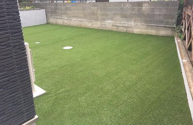 メンテナンスのいらない、美しいお庭になりました☆ ユニオンビズの人工芝 メモリーターフは天然芝のような見た目で自然な仕上がり。 触り心地がいつまでもふわふわです。 FacebookXBlueskyHatenaCopy