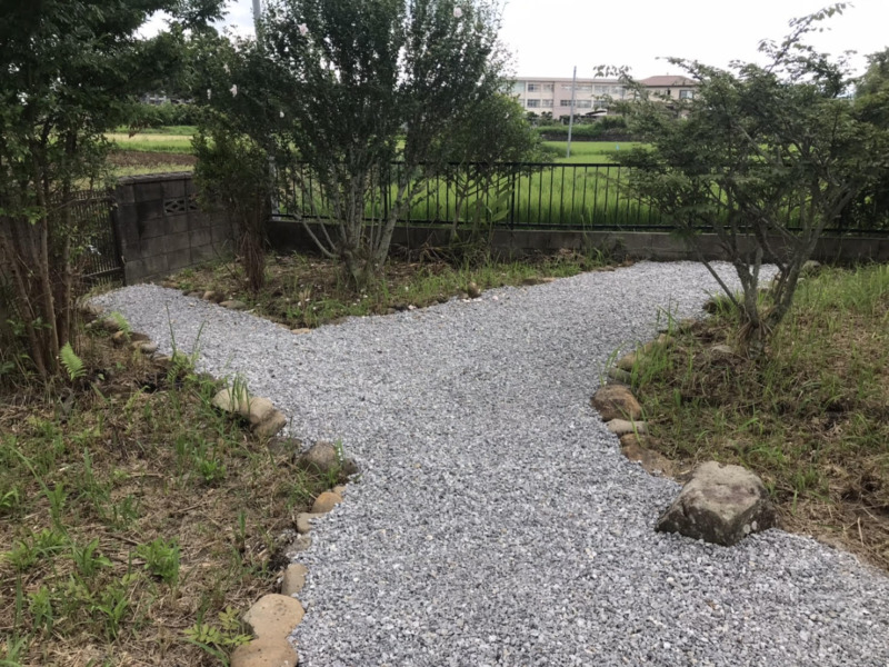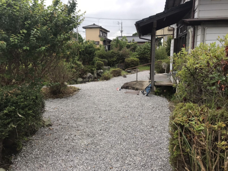 土間コンクリート工事と白砂利を敷いたことにより、雑草対策や水はけがよくなるメリットがあります。