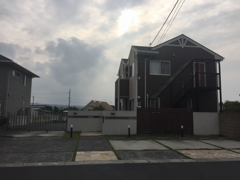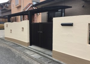 駐車場には色違いのコンクリートと洗い出し自然石張りでアクセントをつけ、優しい風合いの外壁と 建物に合わせたフェンスに間接照明が灯り、お洒落な外構になりました♪ FacebookXBlueskyHatenaCopy