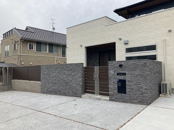 重厚感のある門塀とデザイン性の高い門扉で高級感あふれる外構になりました。