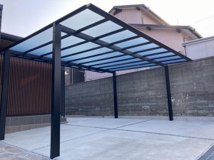 モダンな家屋にあう目隠しフェンス・美しい乱形石張りのアプローチ・スマートなデザインの機能ポール・スタイリッシュなカーポートで統一感のある素敵な外構になりました。 機能ポール(三協アルミ マクリズムP) カーポート(三協アルミ スカイリード) 植栽はお庭に彩をあたえてくれます。夜はアップライトで植栽を照らし優雅な空間を楽しめます。 FacebookXBlueskyHatenaCopy