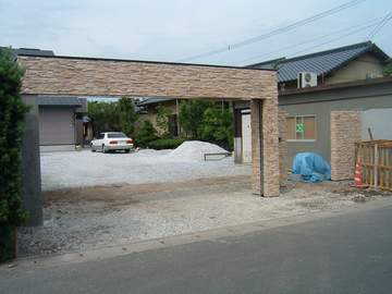 サンゲートR型の施工途中です。豪華な感じになってきました。後、大型鋳物門扉を取付、土間はグランドコンクリートをします。完工が楽しみです